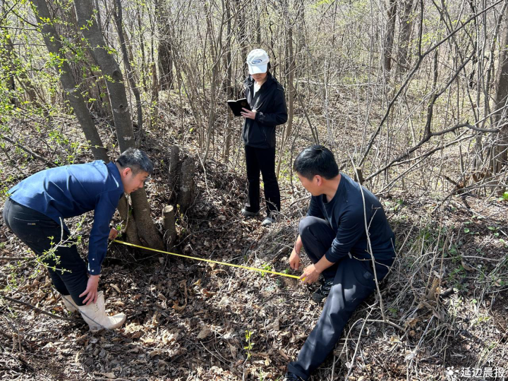4月27日,安图县委党史研究室组织人员前往两江镇汉阳村的深山密林中,开展踏查东北抗联第一路军第三方面军成立地遗址活动。